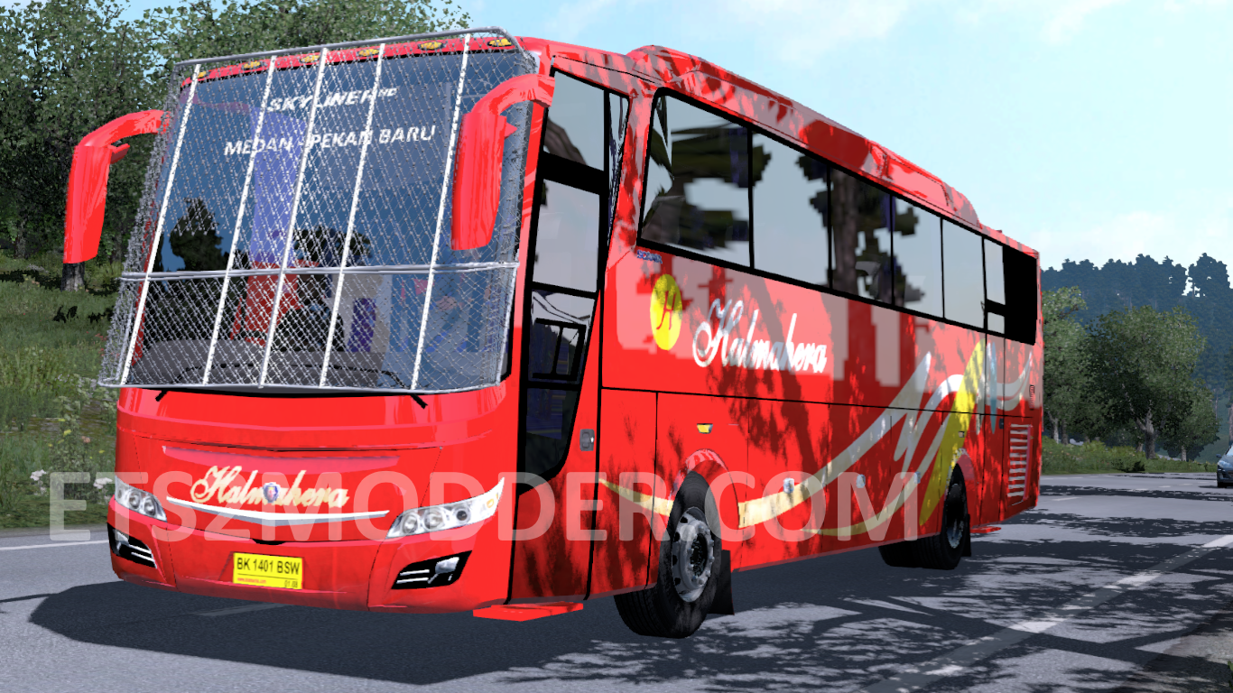 yah ini dia mod livery bis Skyliner terinspirasi dari video di Yt mimin liat ada bus hamhera :v, dengan sediki2 kotor gitu hehey akhirnya mimin membuatkan nya skin halmahera..