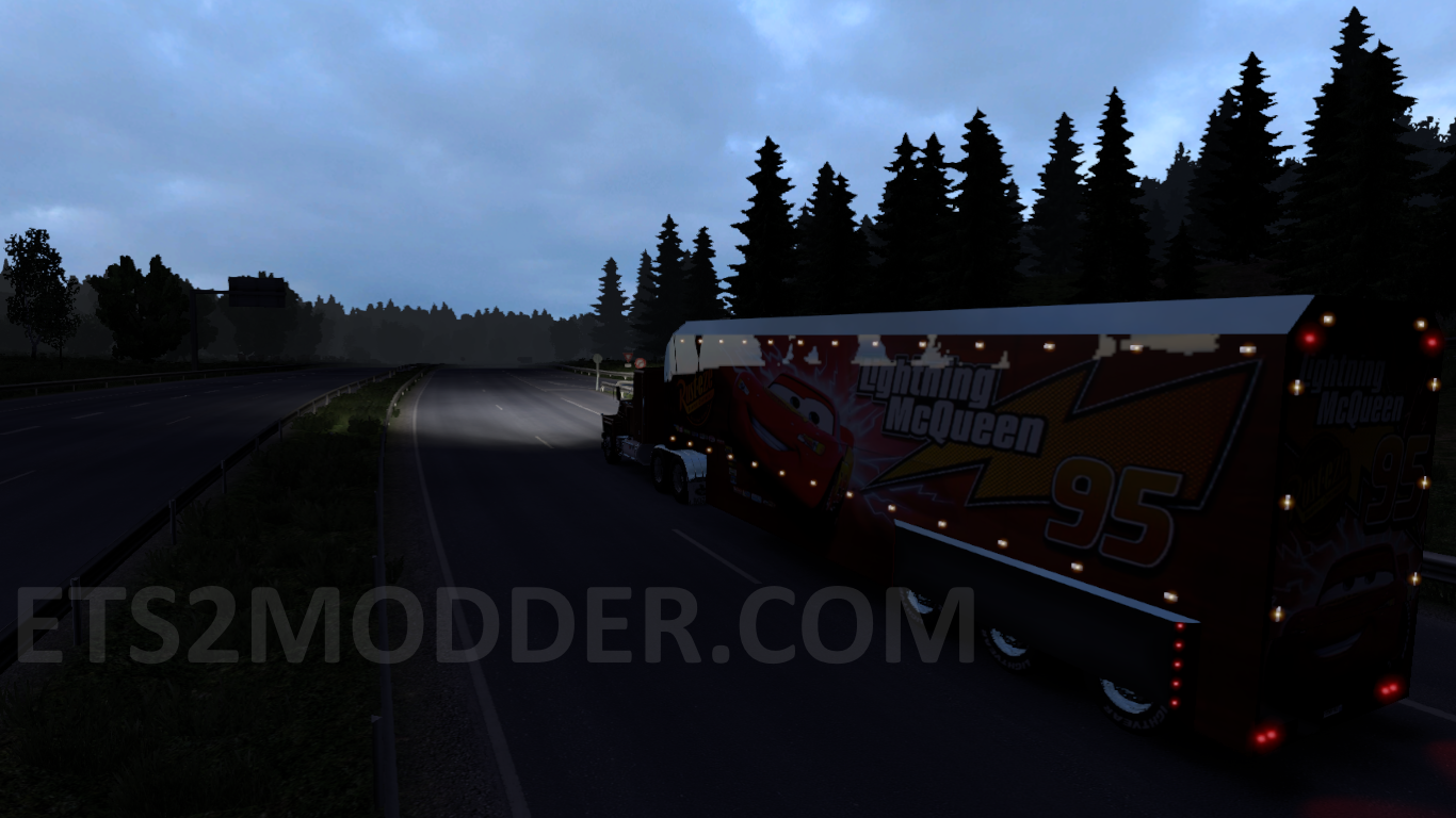 Hai guys, masih inget kan sama film cars ? maish inget karakter Mack di film cars ? :v yaps kali ini kita akan berseruan menggunakan mack di ETS2 dengan menggunakan trailer cars ini 😀 trailer keren dengan lampu di sekeliling nya pokonya mantap 😀