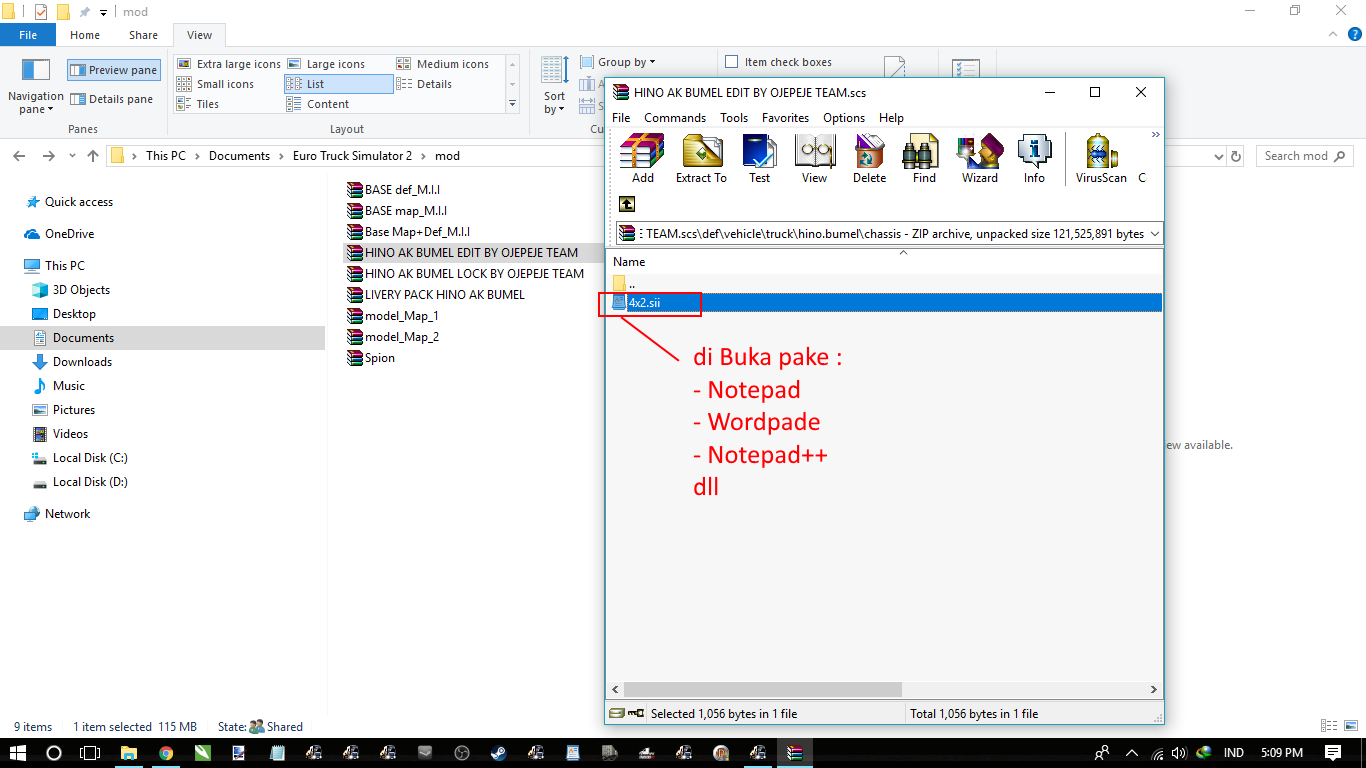 setelah di buka isinya ada file.sii dile nya macem-macem ada yang 4×2, 8×4 dll tergantung mod nya yah … ini adalah Chassis yang akan di gunakan mod tersebut, jadi chassis ini lah yang akan kita edit !! nah langsung saja buka File nya yah…