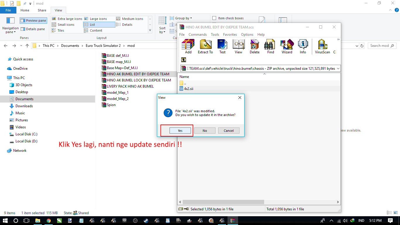 pada tahap ini, bakalan ada pertanyaan kalian klik aja YES, nanti bakalan nge update secara otomatis mod nya.